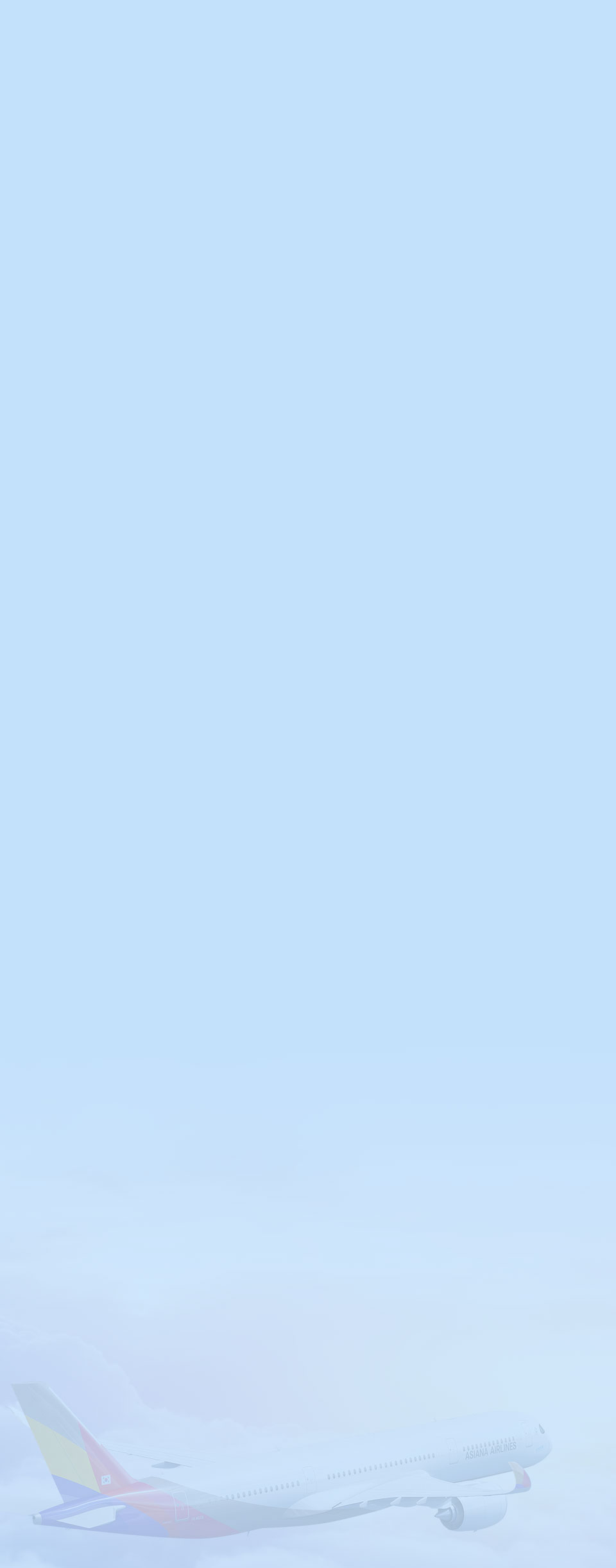 • This discount is only available for tickets on the flight from Hong Kong purchased on the Asiana Airlines website and mobile.