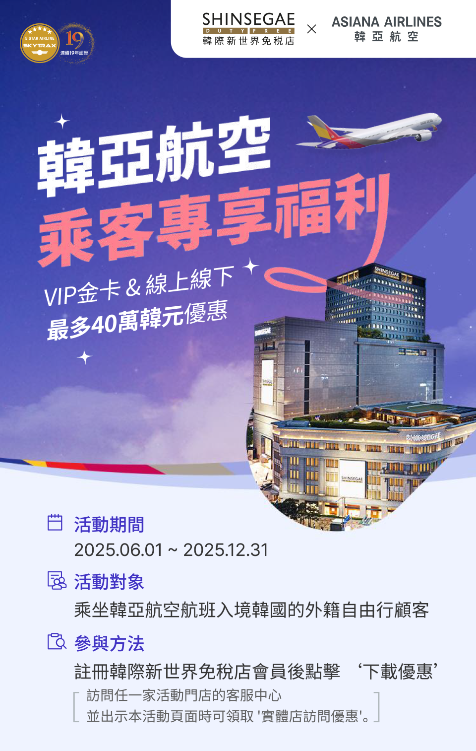 韓際新世界免稅店尊享購物優惠│ASIANA AIRLINES