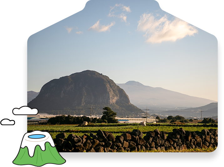 透過火山活動後產生的火山島,在濟州島可以看到許多火山丘、柱狀節理、洞穴、玄武岩等地質, 因火山爆發,從海上涌出滾燙的熔岩而形成的漢拿山,在漢拿山山頂有濟州島最大的火山口「白鹿潭」。