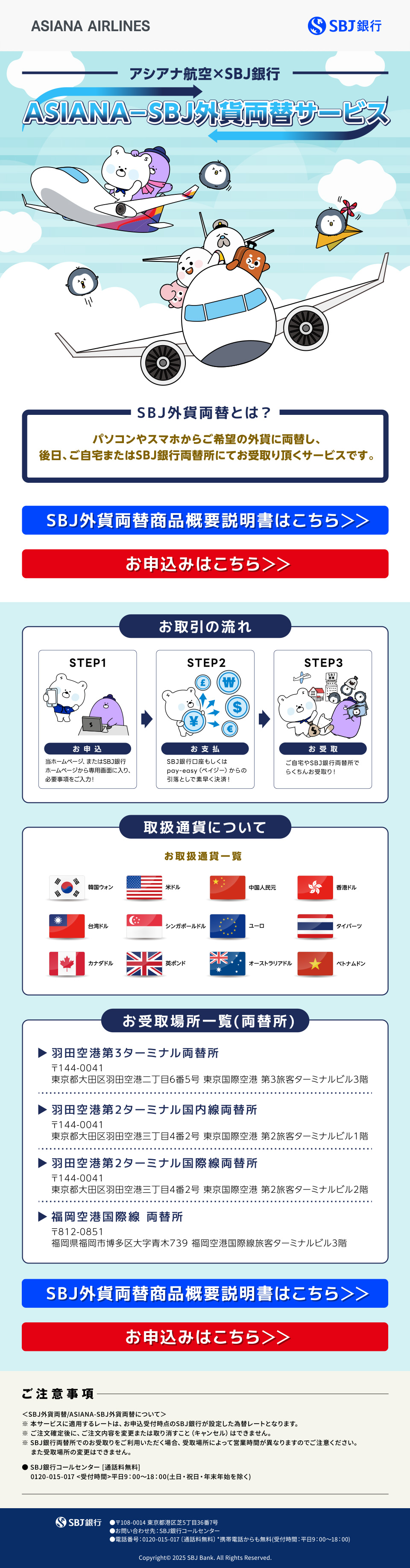 アシアナ航空×SBJ銀行 「ASIANA-SBJ外貨両替サービス」のご案内