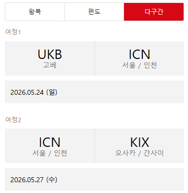 ‘26년 5월, 단 한 번 인천-고베(UKB) 직항 스케줄 예약이 온라인에서 오픈됩니다.