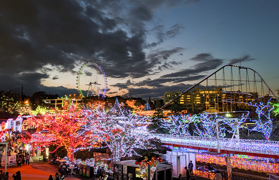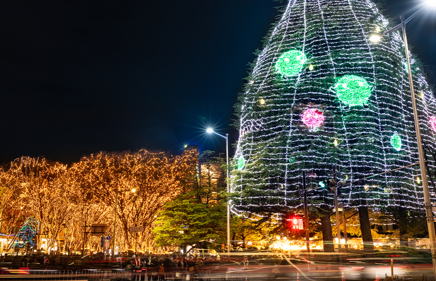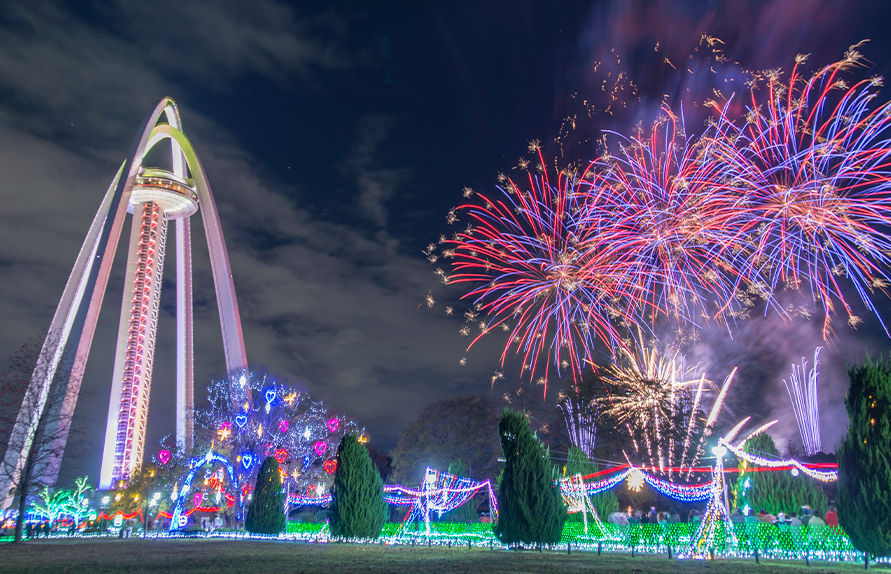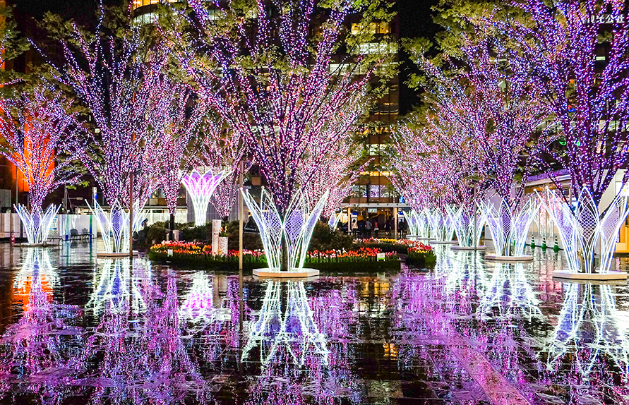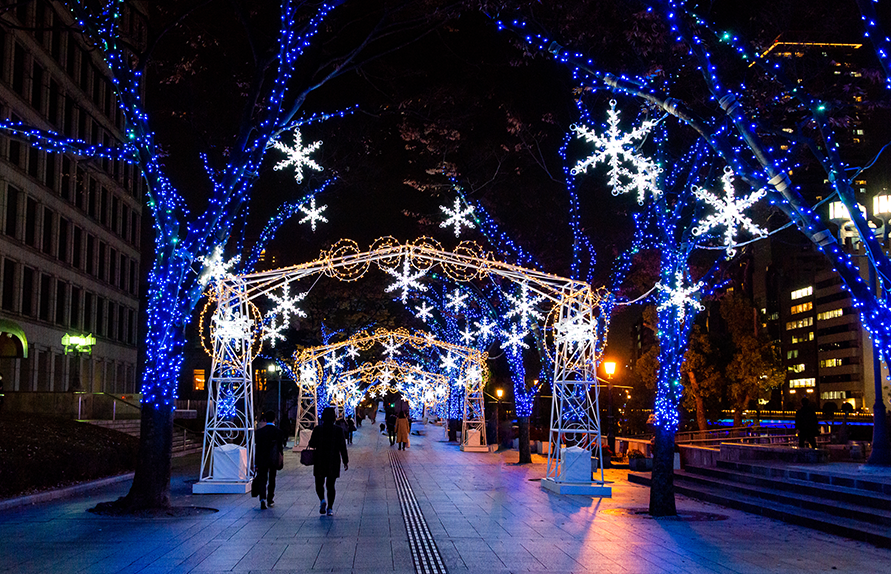 하얀 눈과 화려한 조명이