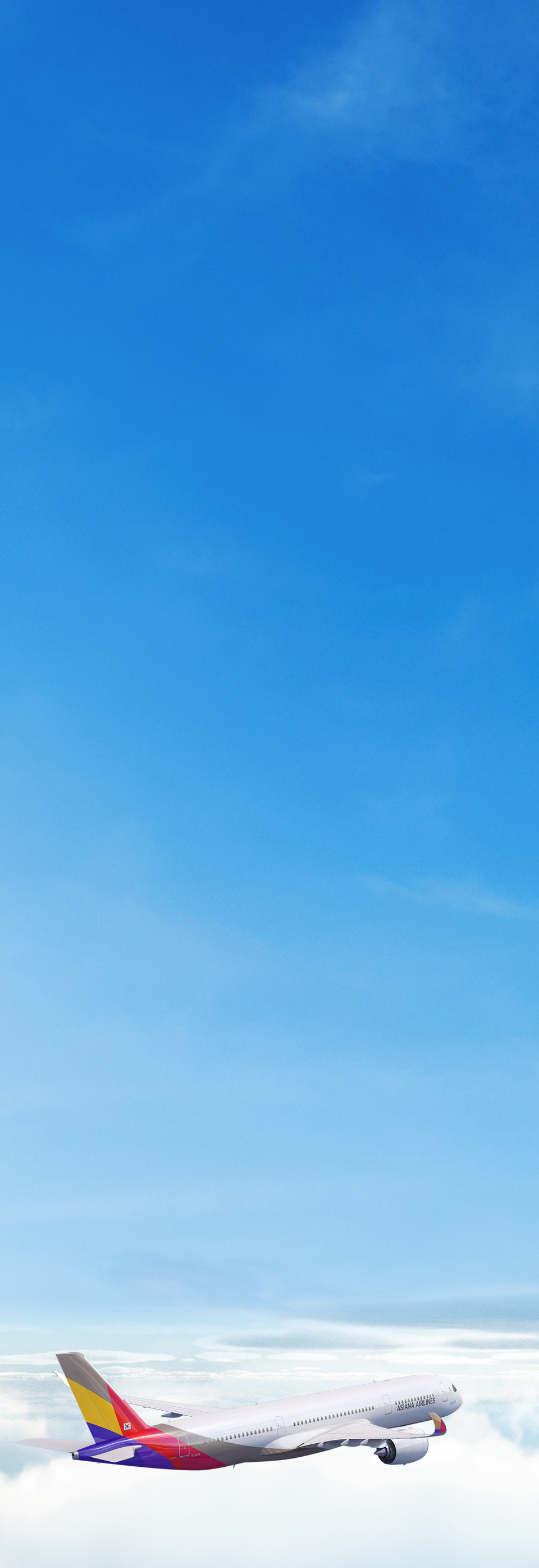 • 기내 Wi-Fi 접속은 아시아나항공 운항 A350 기종에서만 가능합니다. 항공기 운영 등의 부득이한 사유로 예약 이후에도 운항스케줄 및 기종이 변경될 수 있으며 Wi-Fi 사용 불가 시 대체품 제공은 어려운 점 양해 부탁드립니다.